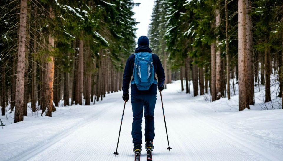 - Лыжи: Классическая лыжня через заснеженный лес.